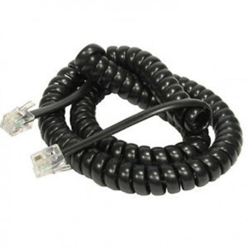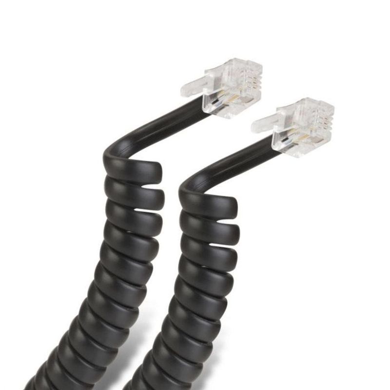 Cable telefónico compatible con 1 ó 2 líneas (4-hilos) ya montado con sus correspondientes conectores RJ11 en cada extremo, retractil.