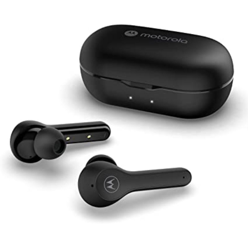 Auriculares inalámbricos verdaderos: los auriculares inalámbricos Motorola están diseñados pensando en la comodidad y portabilidad para usar en cualquier lugar para realizar múltiples tareas. Estos asequibles auriculares resistentes al agua con 15 horas de tiempo de reproducción ofrecen un sonido superior y llamadas manos libres. Llamadas manos libres Los auriculares inalámbricos para llamadas telefónicas cuentan con un micrófono integrado en cada auricular para su uso juntos como par, o como auriculares mono. El control táctil inteligente para llamadas, volumen, salto y comando de voz son accesorios de viaje ideales para el trabajo o la escuela. IPX5 resistente al agua Diseñados para el uso diario, estos auriculares Bluetooth ayudan a resistir el sudor, la humedad y los elementos para garantizar una experiencia de sonido nítida para viajar. Estos auriculares son un gran regalo para todos. Diseño práctico Estos auriculares Bluetooth están diseñados ergonómicamente para los auriculares más cómodos. Nuestros auriculares inalámbricos vienen en tres tamaños diferentes para un ajuste óptimo y una experiencia de audio. Viene con una funda elegante, compacta y de carga rápida.