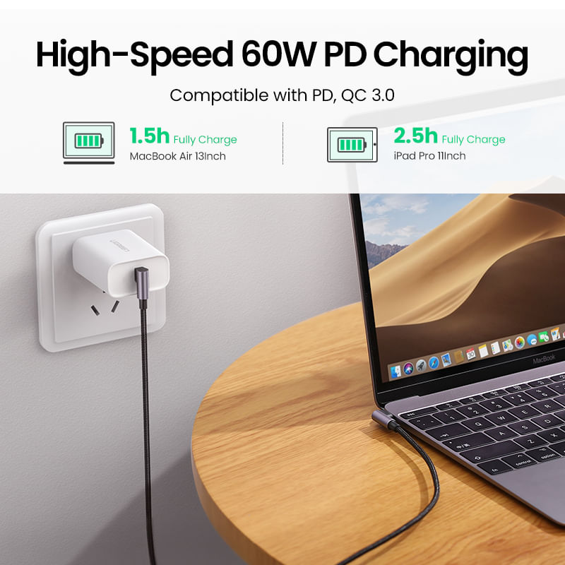 | * Diseño único: el cable UGREEN USB-C a USB-C con un innovador diseño de 90 grados L, es mucho más conveniente y más cómodo para jugar, ver videos, leer libros electrónicos cuando se acuesta en el sofá o en la cama mientras carga. 【El grosor máximo de la carcasa del teléfono permitido es de 2,5 mm.】 * Entrega de energía máxima de 60 W: carga rápida de sus computadoras portátiles o teléfonos inteligentes USB-C a una corriente máxima de 20 V 3 A, admite carga rápida PD de entrega de energía máxima de 60 W. Ofrece una velocidad de transferencia de hasta 480 Mbps (USB 2.0) o 100 canciones cada 5 segundos. 【Nota: NO admite salida de video.】 *Amplia Compatibilidad: Cable USB C UGREEN compatible con Google Pixel 2/3/3a XL, Samsung Galaxy Note 10/Note 10+/Note 9/S10/S10e/S10+/S9+/S8+, Nexus 6P 5X, Nintendo Switch, LG G7 ThinQ G5 G6 V20 V30 V40 V50, iPad Pro 2018, MacBook 12' 2017/2016/2015, MacBook Pro 13' 2019/2018/2017/2016, MacBook Air 13' 2019/2018, Huawei Matebook X Pro, Google Chromebook Pixel, Dell XPS 13, Lenovo Yoga 900 720, Razer Blade Stealth 2018, ASUS ZenBook 3, portátil HP Spectre, Envy 13t. |